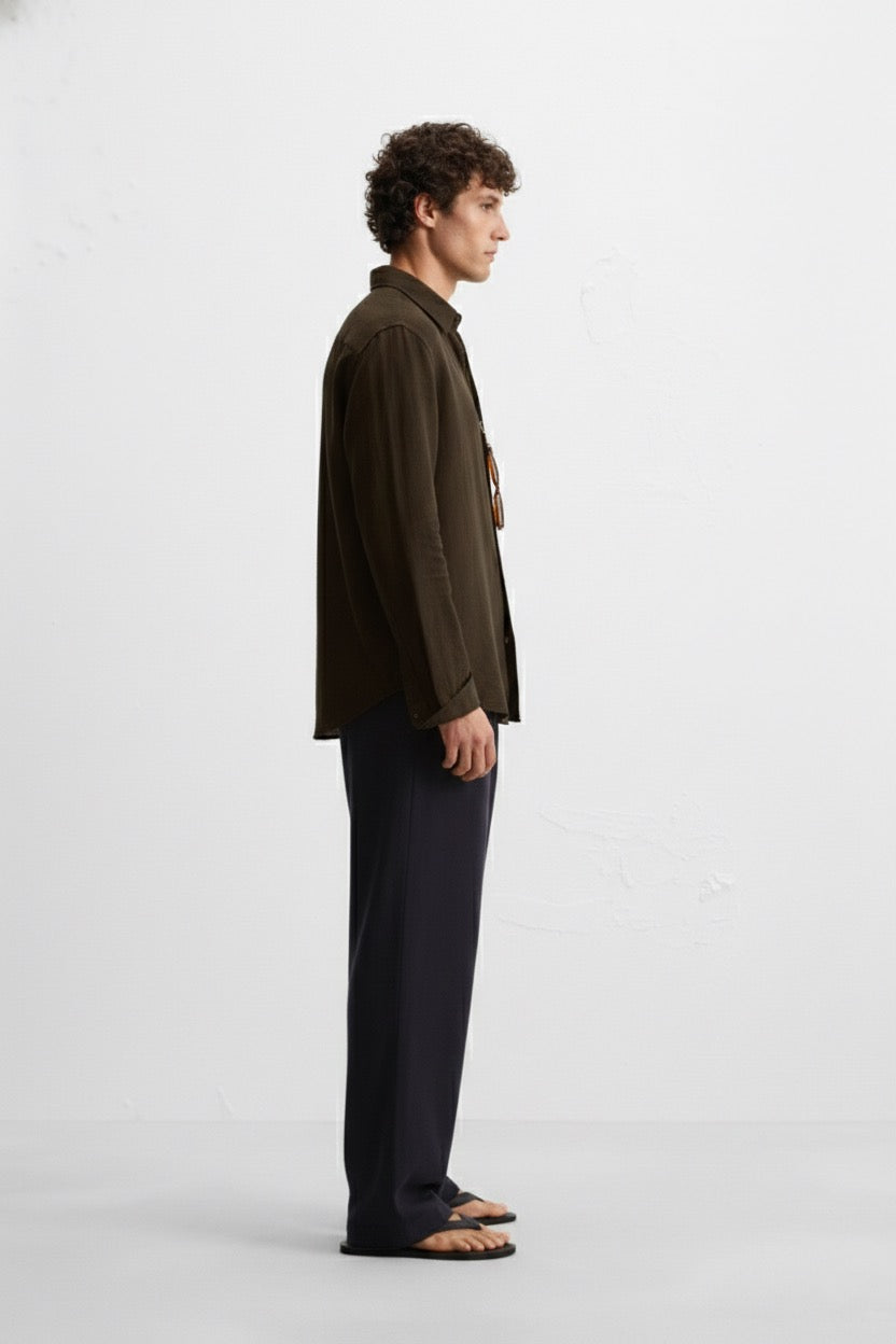 A pure linen piece in a deep, rich brown specially dyed for YUR. Soft, breathable, and naturally textured, it carries a depth you notice up close. Easy to wear, easy to live in.