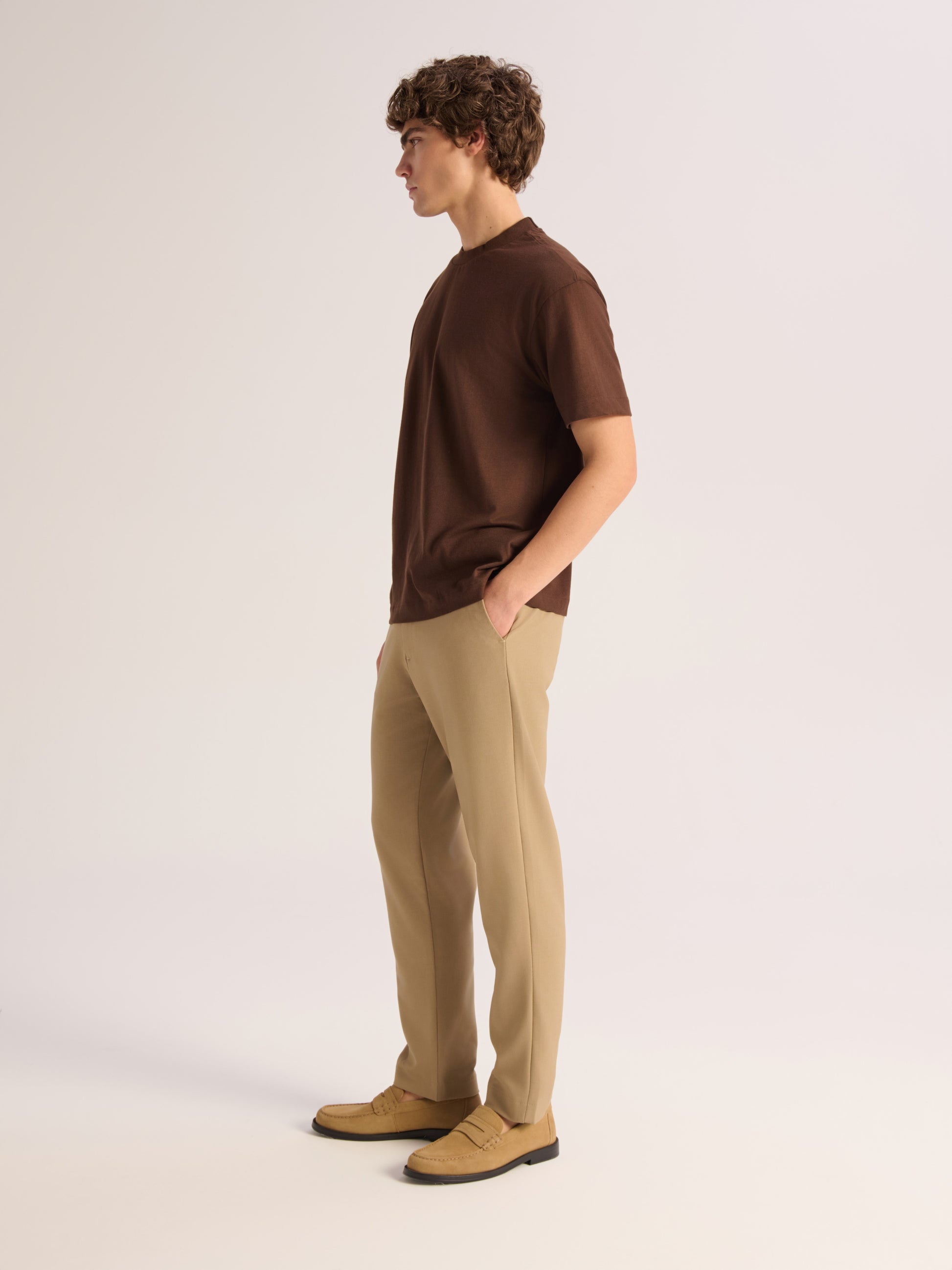 YUR’s version of the finely knitted T-shirt is made from a mid-weight, organic-cotton jersey that's washed for softness. It has a round neck followed by a relaxed silhouette with a straight hem. Complete an uncomplicated summer look with trousers and jacket for winter.