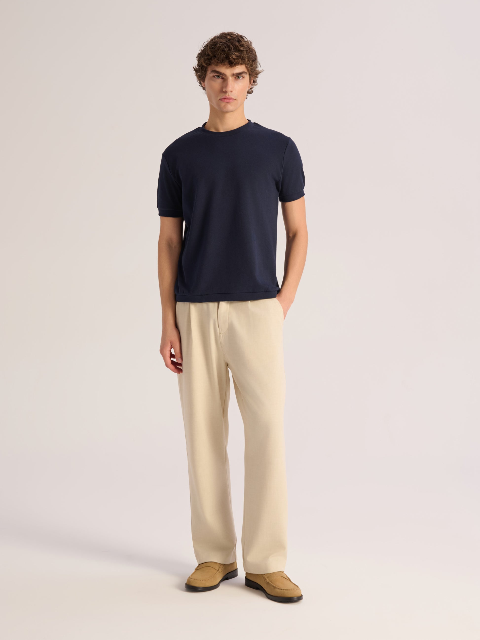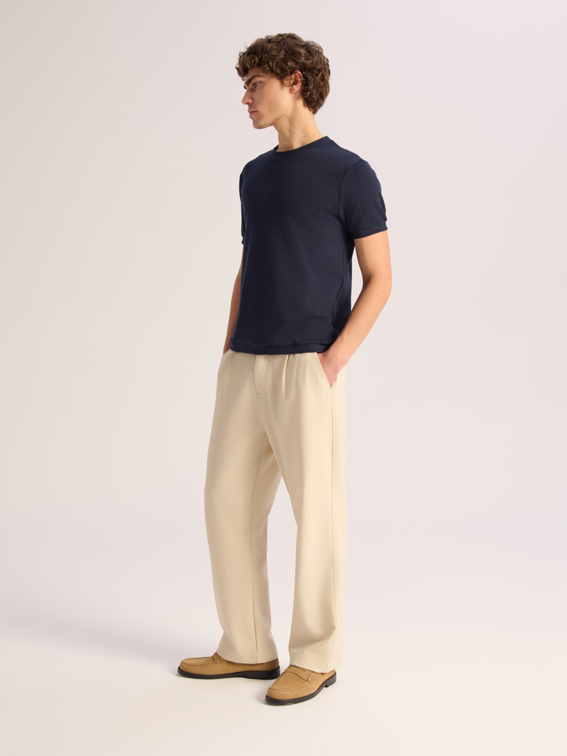 YUR trousers with single pleats running seamlessly down the front. They have a flattering silhouette with a mid waist followed by long, wide legs set with belt loops, a zipper fly, side and back pockets. Tuck a slim knitted top for a balanced silhouette.