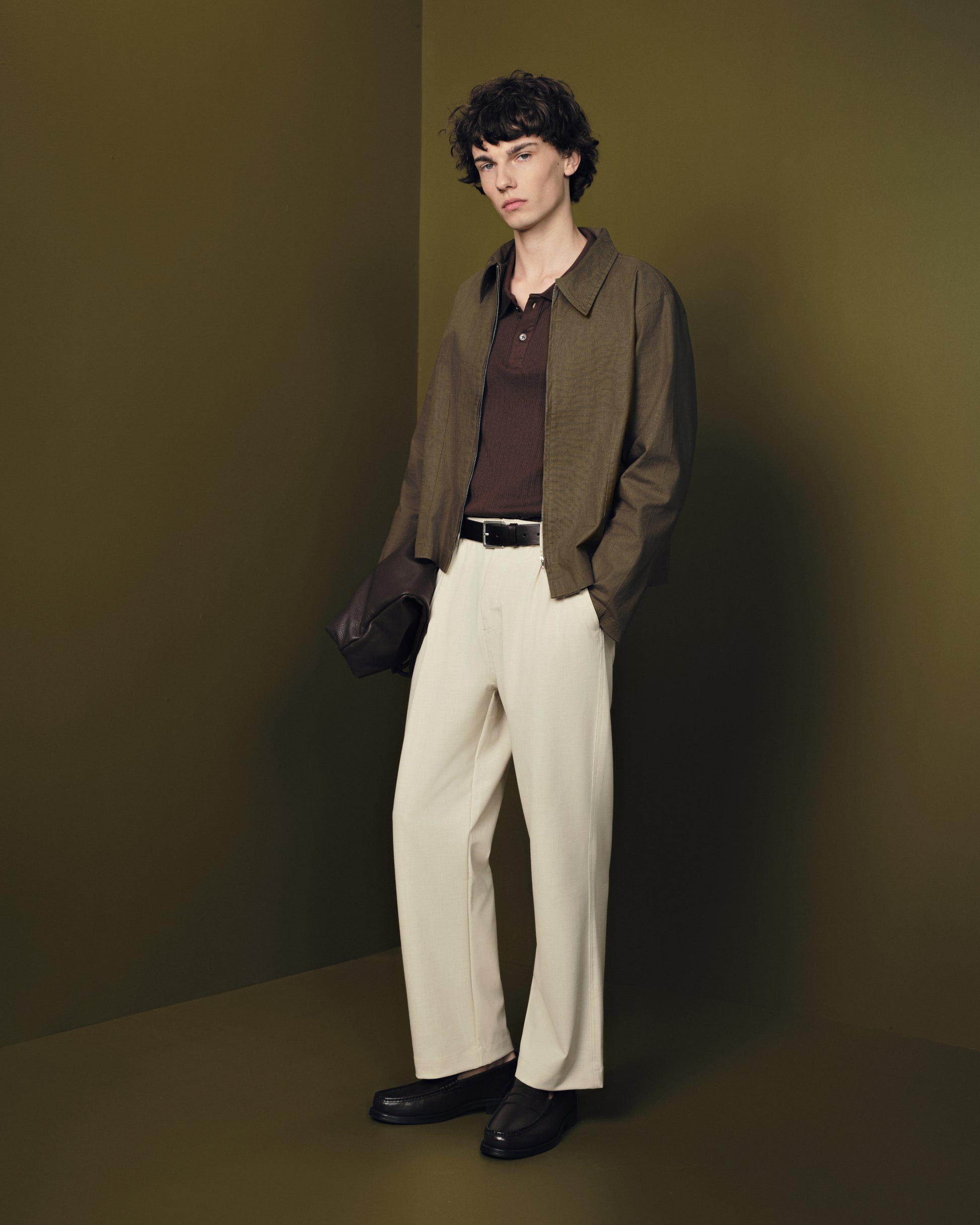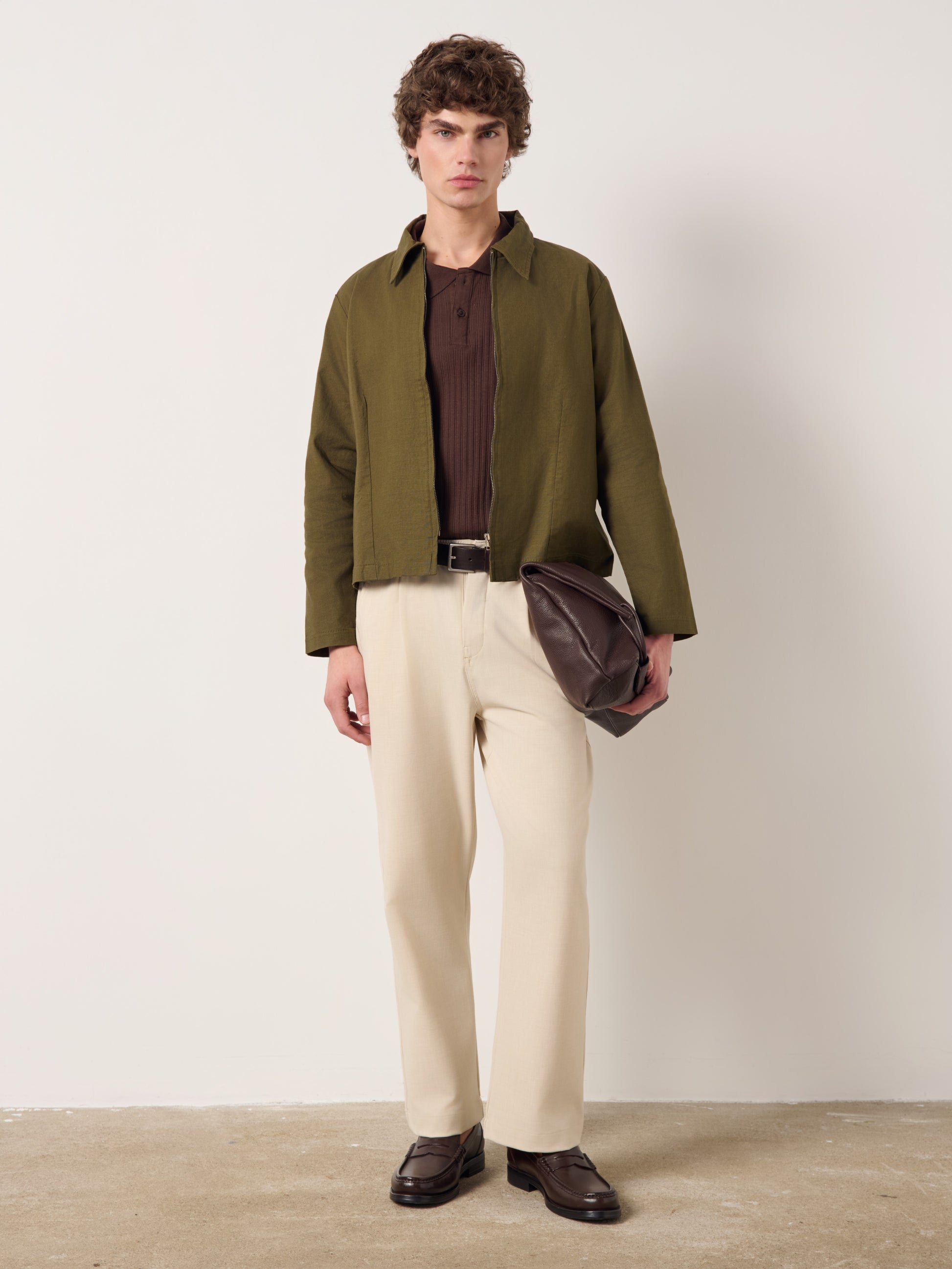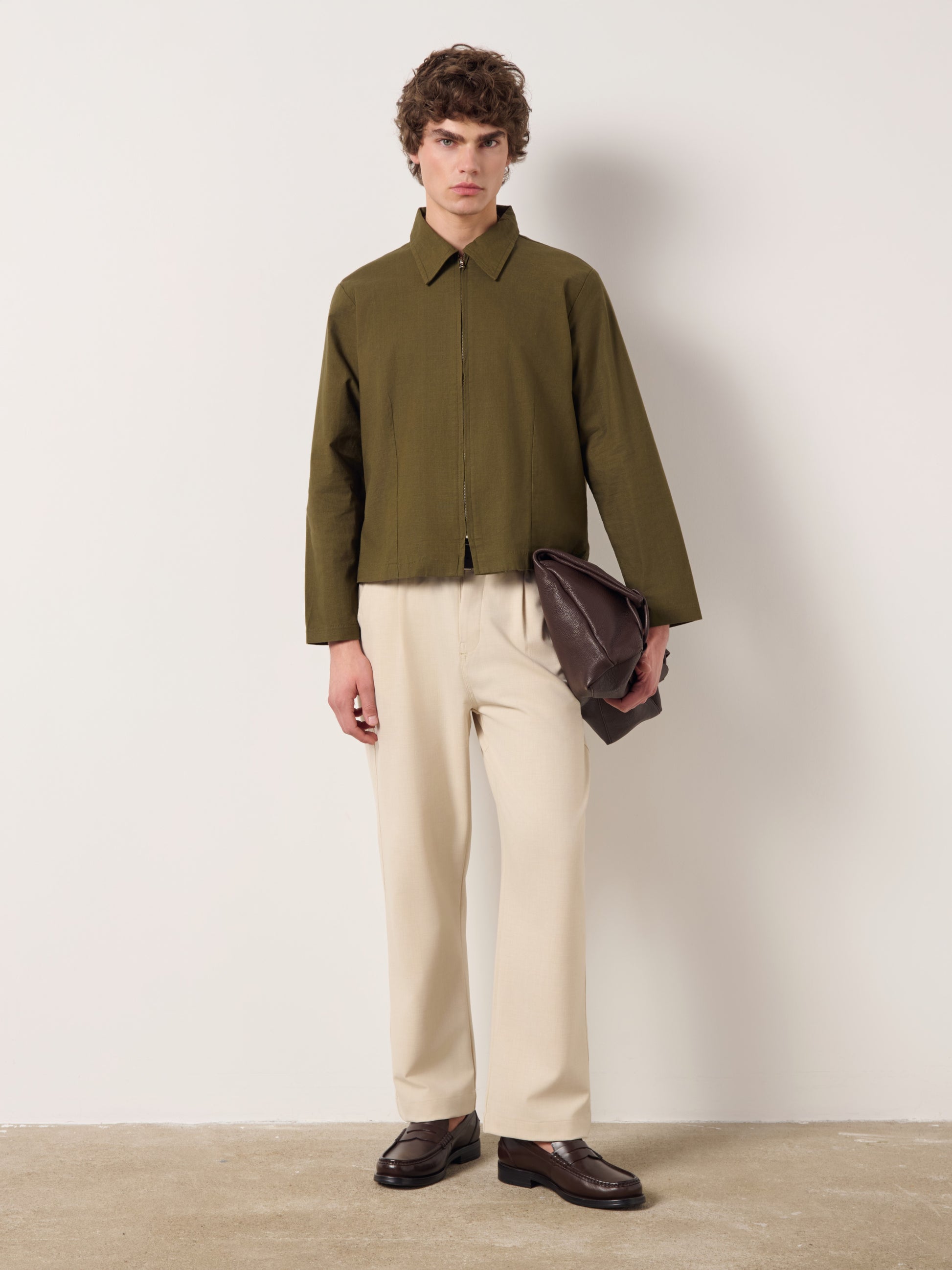YUR jacket cut to a wide and cropped boxy silhouette framed by invisible stitching on the sleeves and the bottom. It is made from cotton to hold its structure with a silver-tone zipper. Complement with wide trousers and knitted polo shirt.