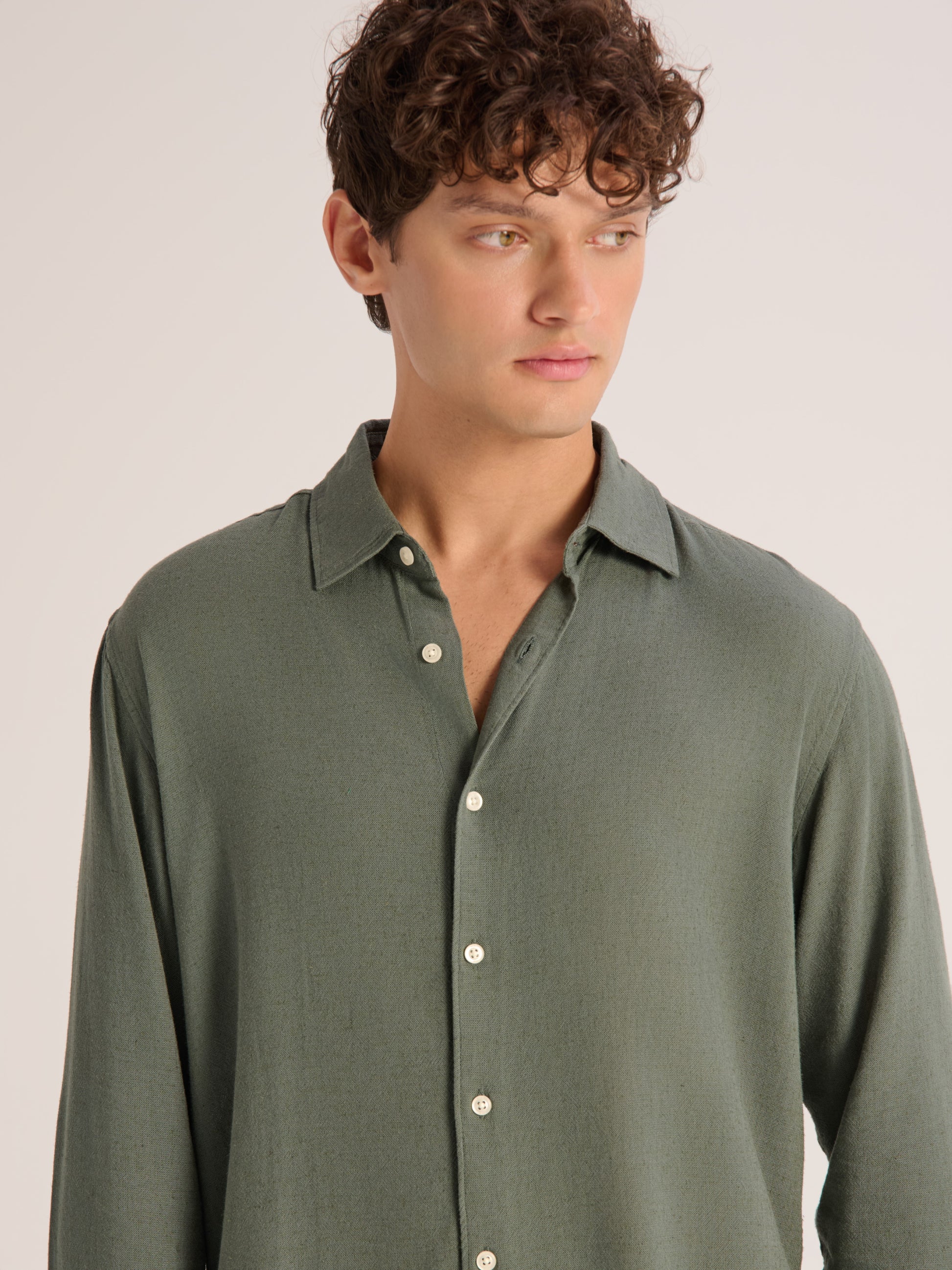 Relaxed fit collared shirt made of YUR Cotton viscose fabric for a distinct flowy look. Button-up front and a curved hem.