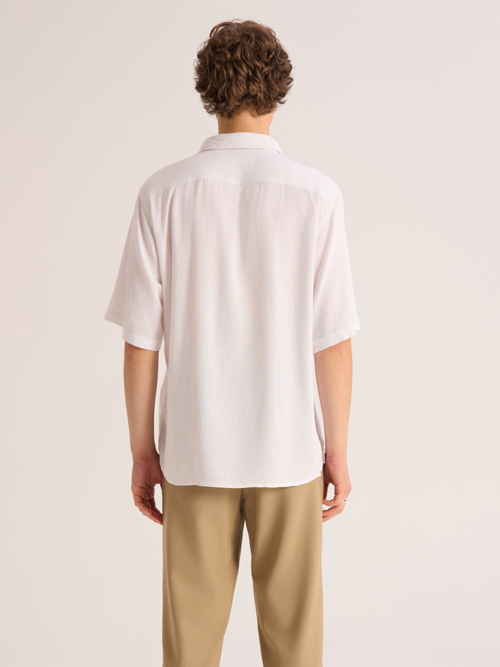 Relaxed fit collared shirt made of YUR Cotton viscose fabric for a distinct flowy look. Button-up front and a curved hem.
