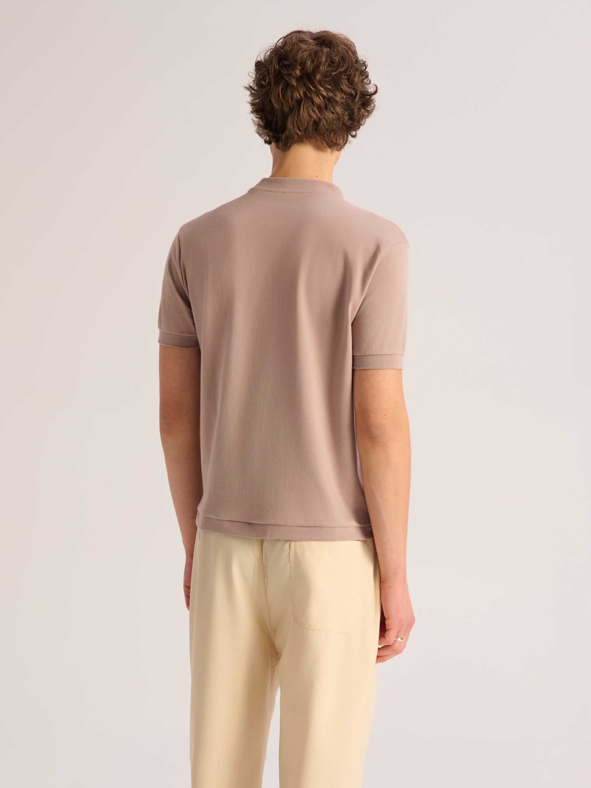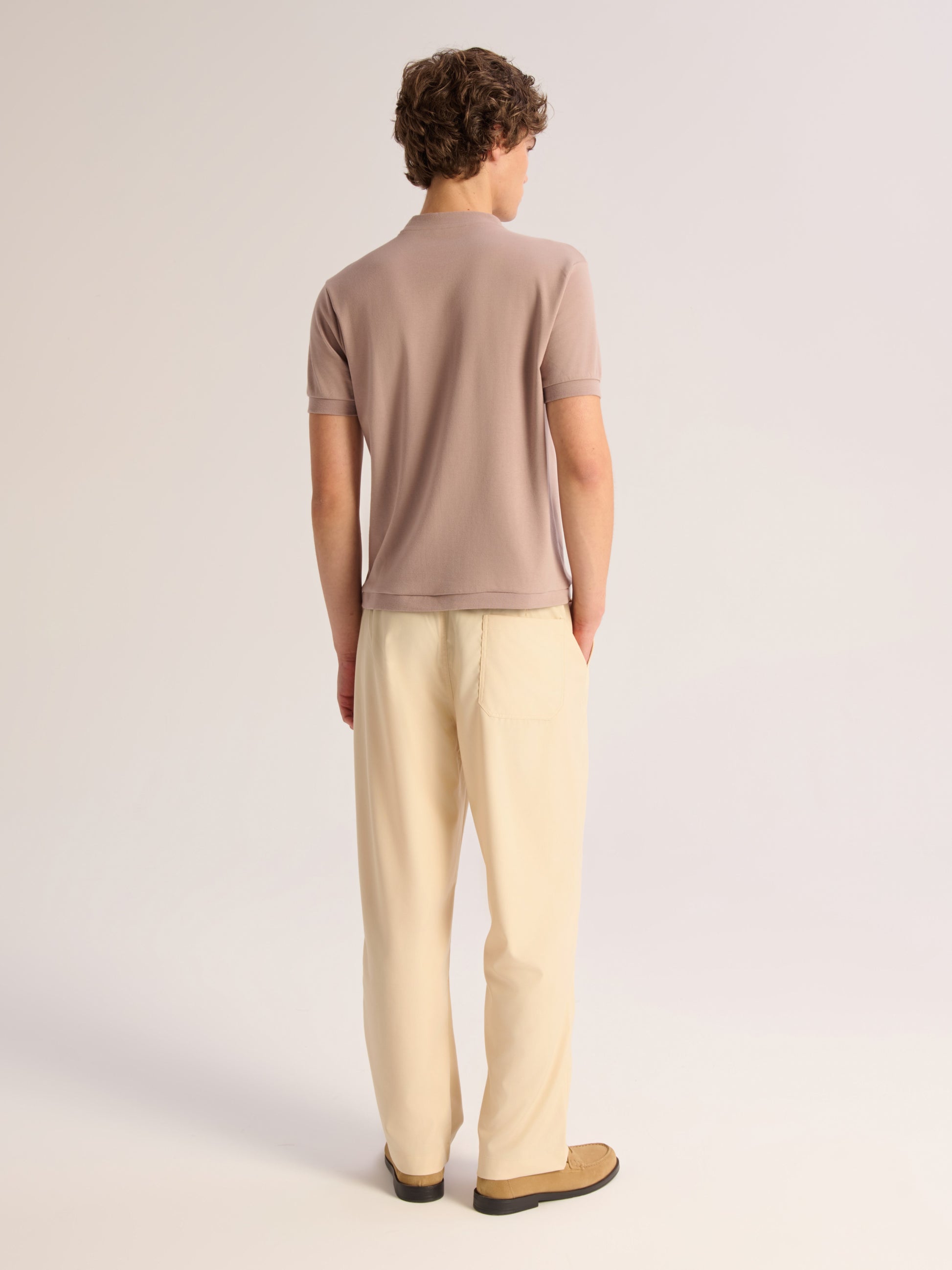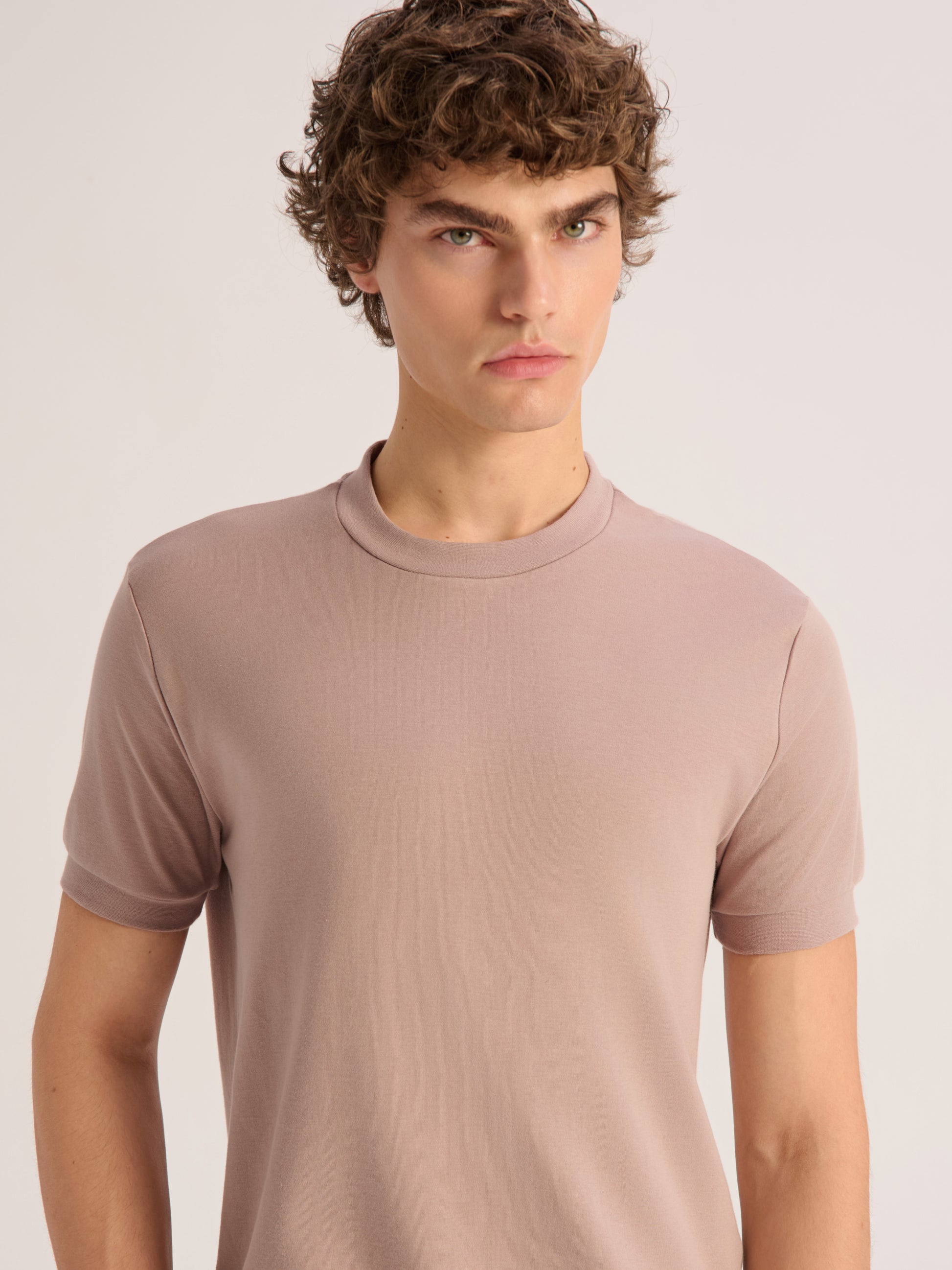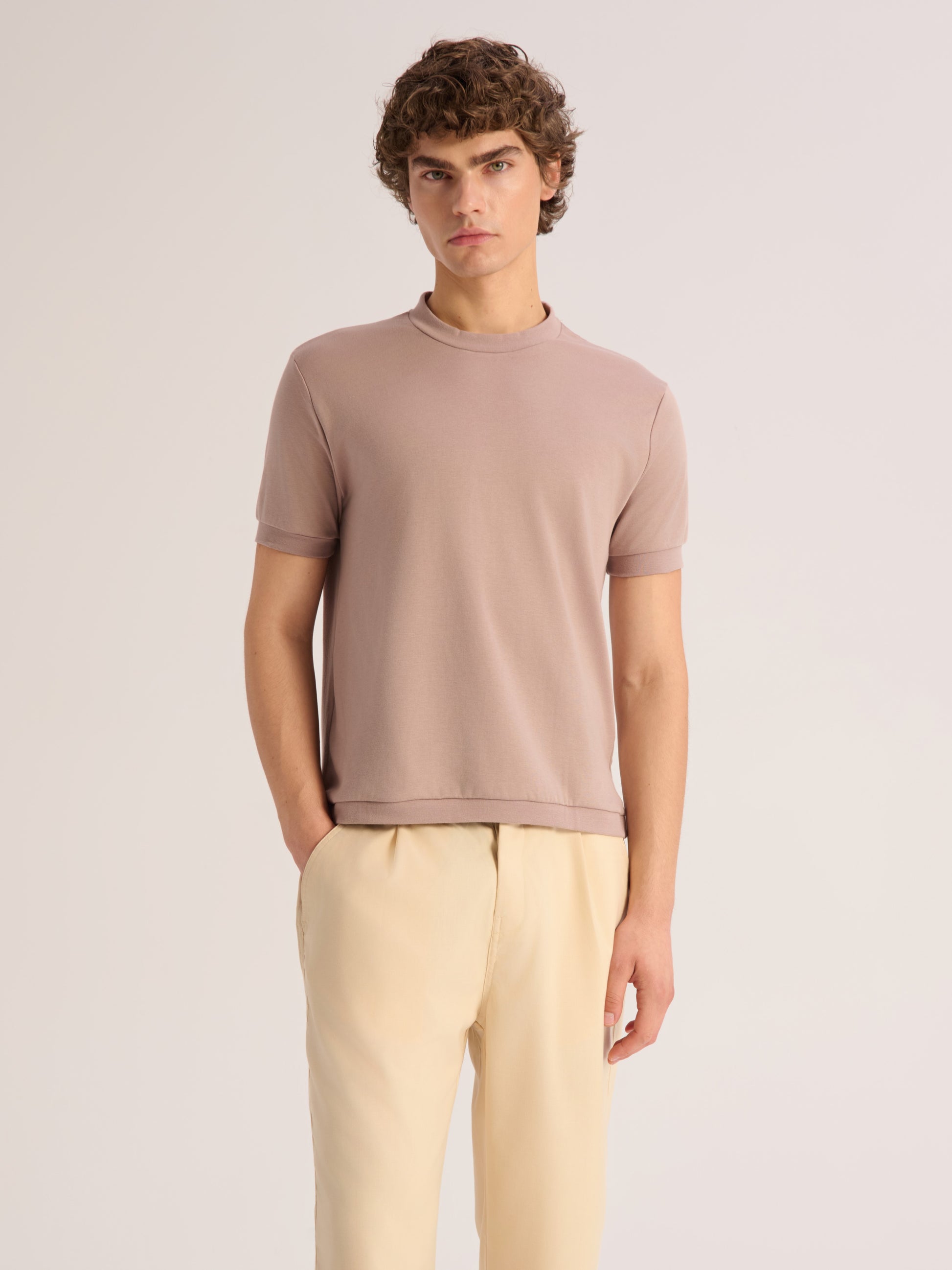 YUR slim fit short sleeve knitted T-shirt distinctly made with length sits on the waist for a classic yet laid back silhouette. made of 100% cotton. with ribs on collar, hem and sleeve.