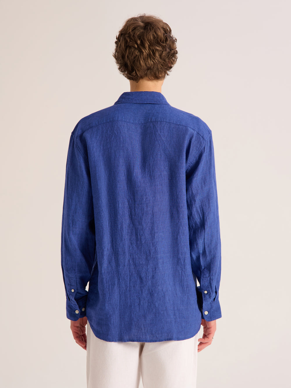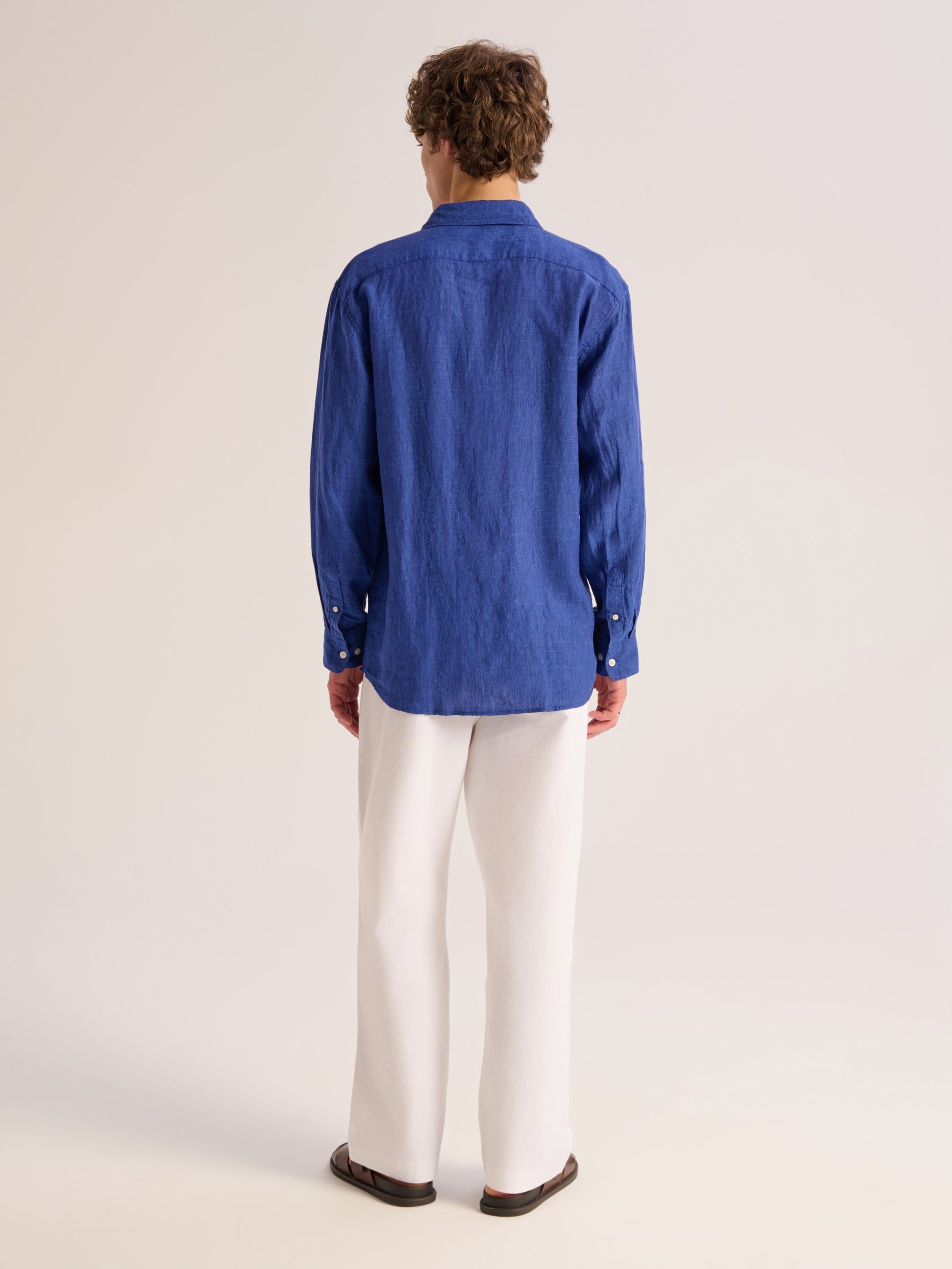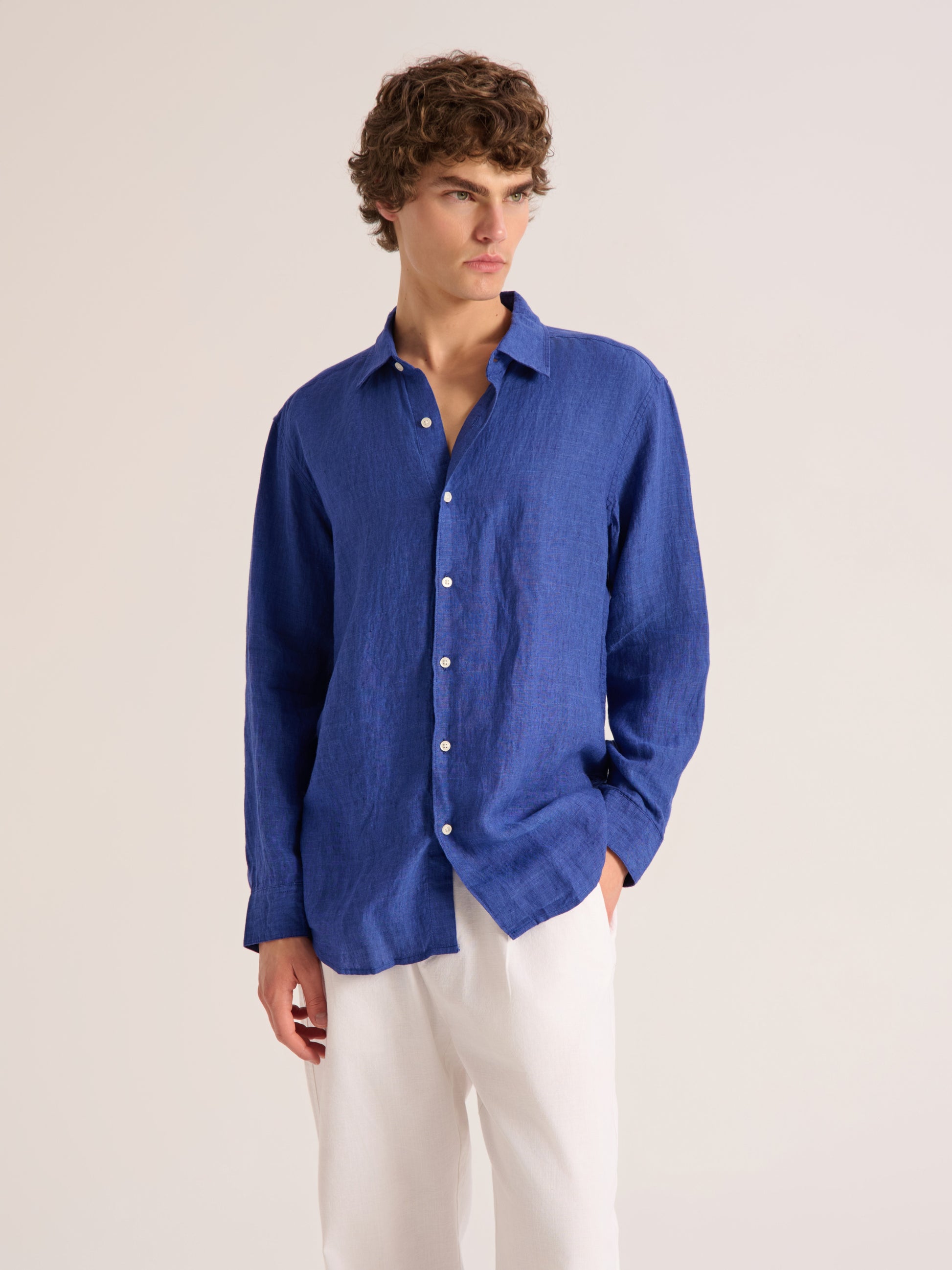 YUR relaxed fit linen shirt features a sleek silhouette with long sleeves, buttoned cuffs. Add a clean jacket and tuck a scarf inside for extra warmth and style.