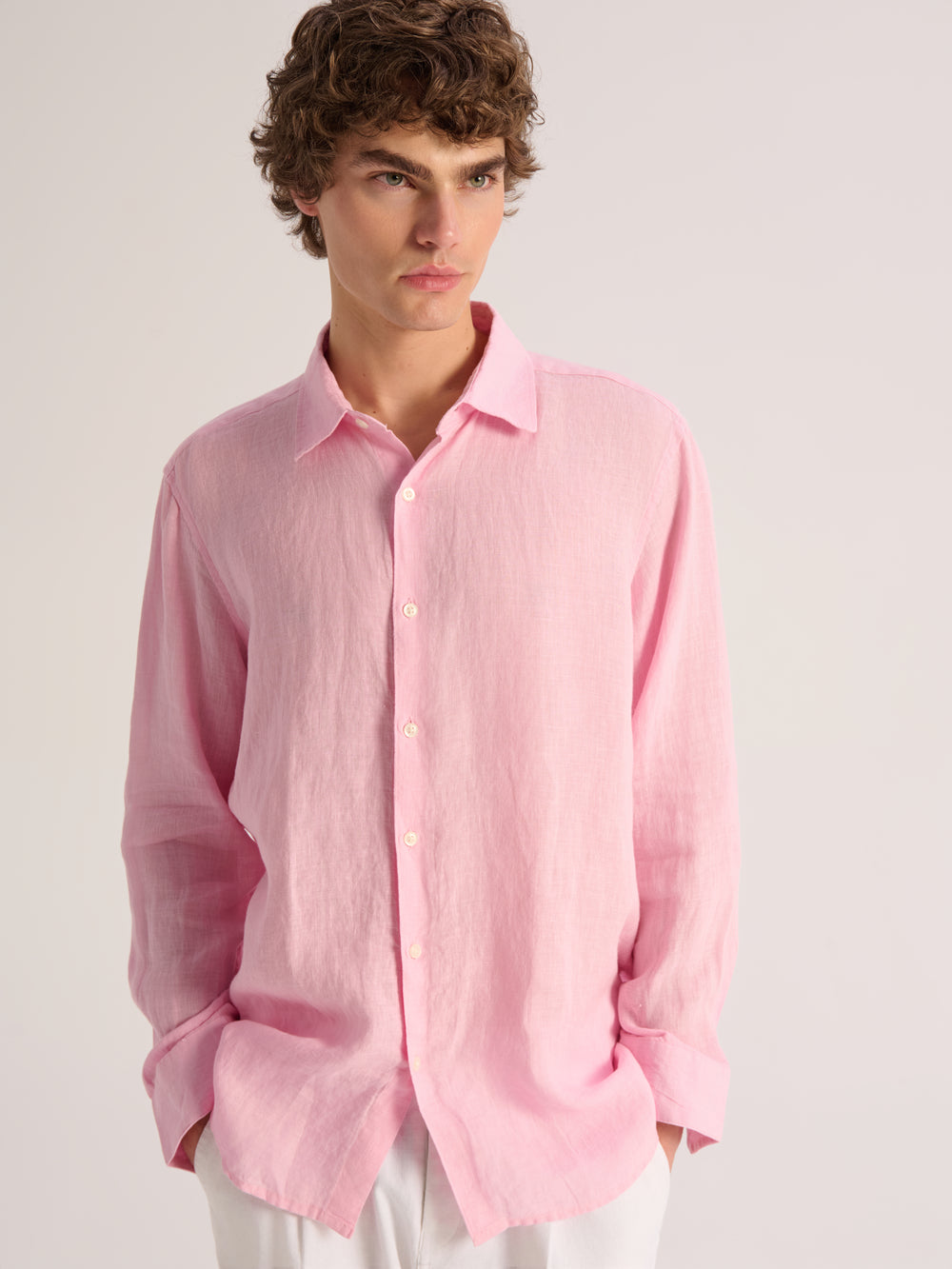 YUR relaxed fit linen shirt features a sleek silhouette with long sleeves, buttoned cuffs. Add a clean jacket and tuck a scarf inside for extra warmth and style.
