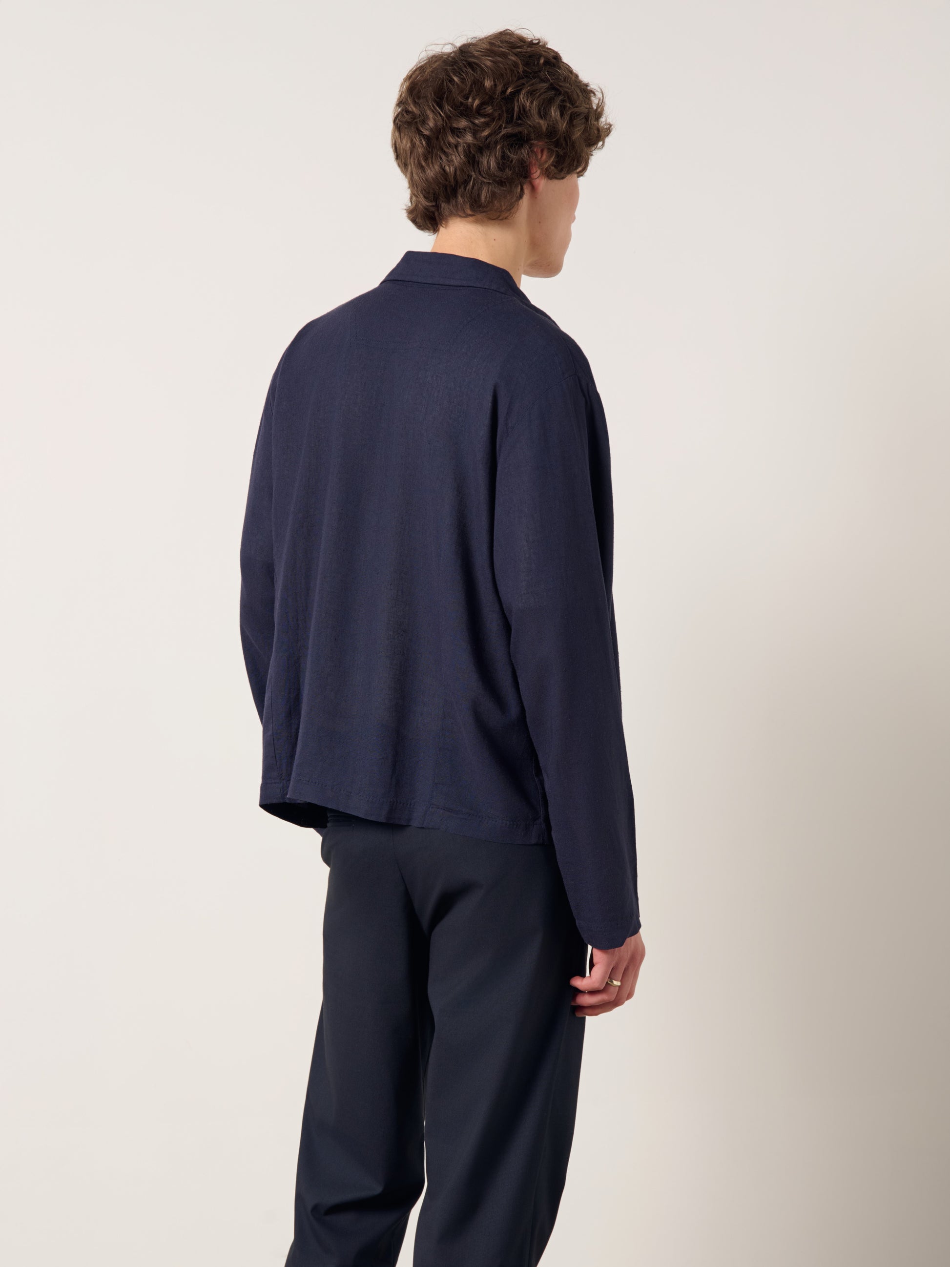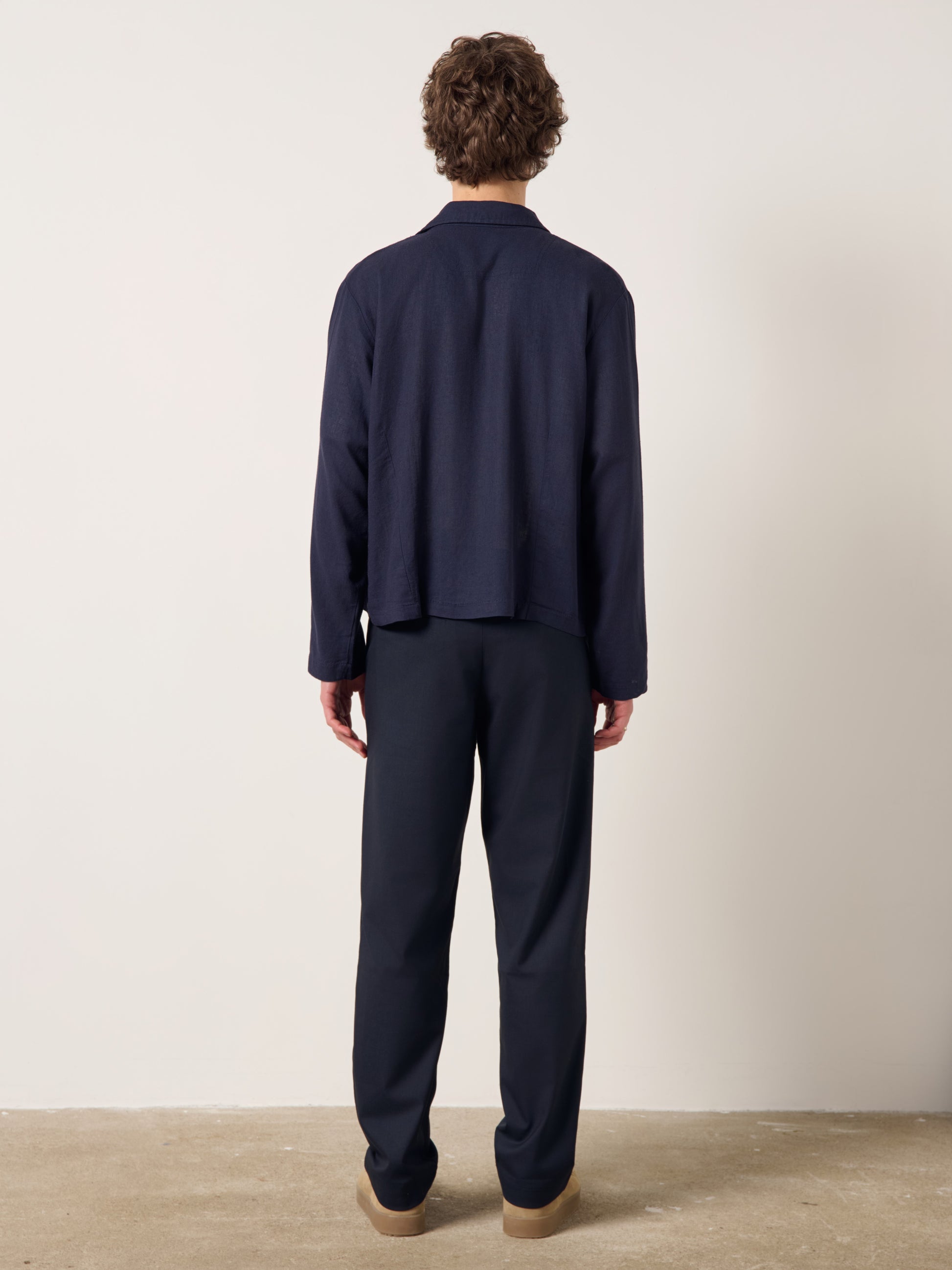YUR cropped jacket is made from light-weight Linen Lyocell fiber's to a very oversized shape with a boxy silhouette. Wear it as an effortless outerwear piece throughout a summer and winter trip.