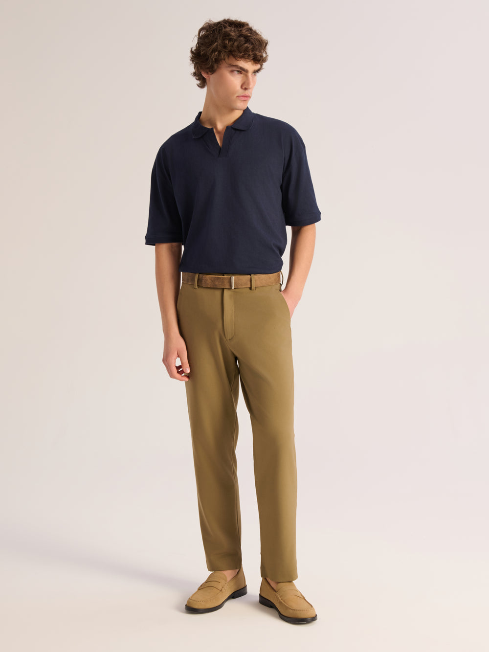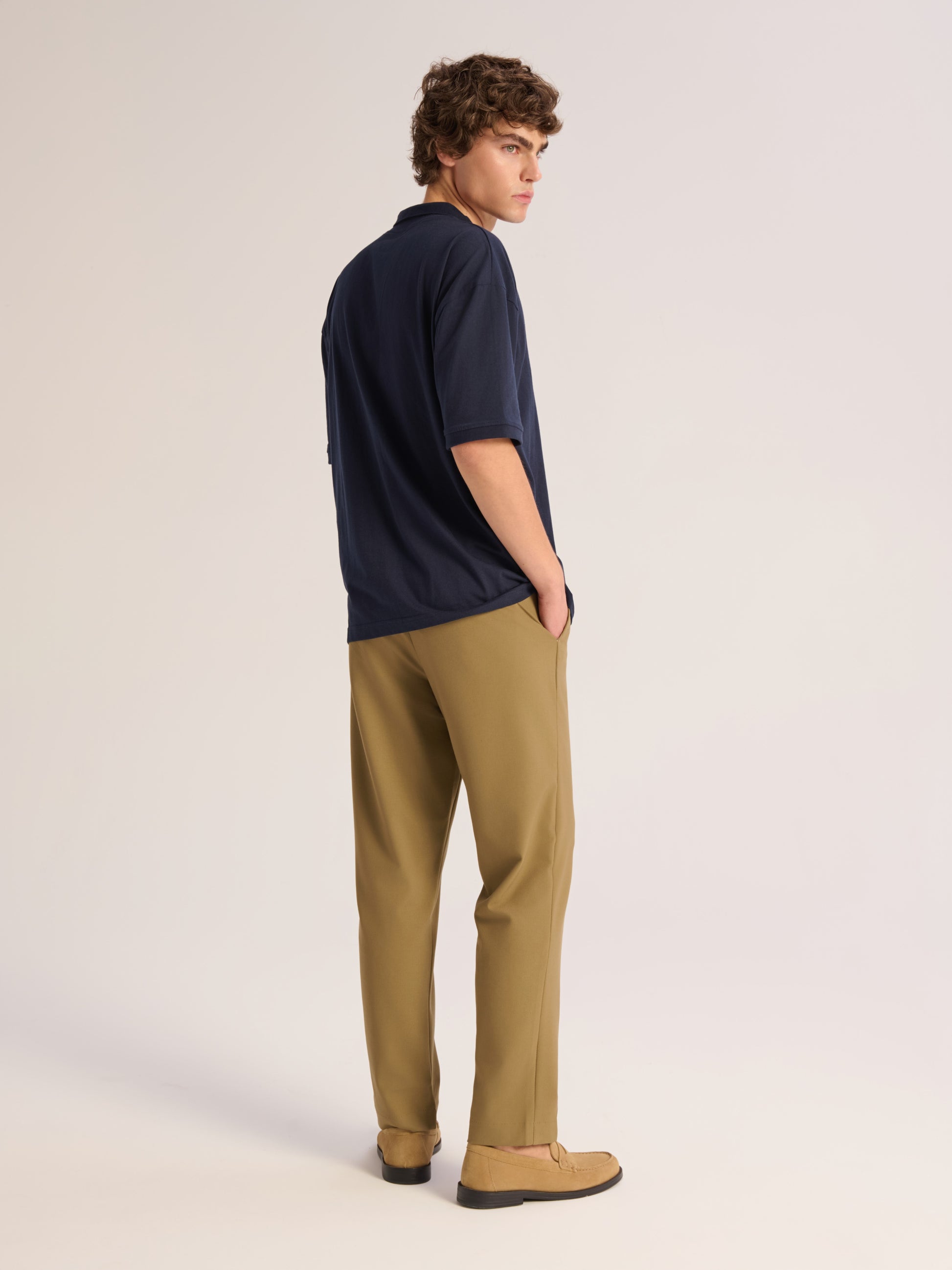 YUR knitted polo made of 100% cotton finished with ribs on neck and cuffs. Relaxed shape and soft hand feel. Add a shirt on top completing a casual evening, with the polo tucked in.