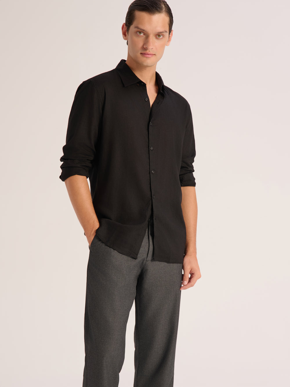 YUR shirt made from Linen Lyocell fabric to a precisely paneled straight silhouette that fastens with buttons at the placket and cuffs. Layer it over a tank in summer and over a jacket in winter.