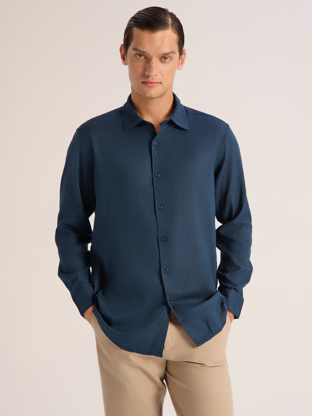 YUR shirt made from Linen Lyocell fabric to a precisely paneled straight silhouette that fastens with buttons at the placket and cuffs. Layer it over a tank in summer and over a jacket in winter.