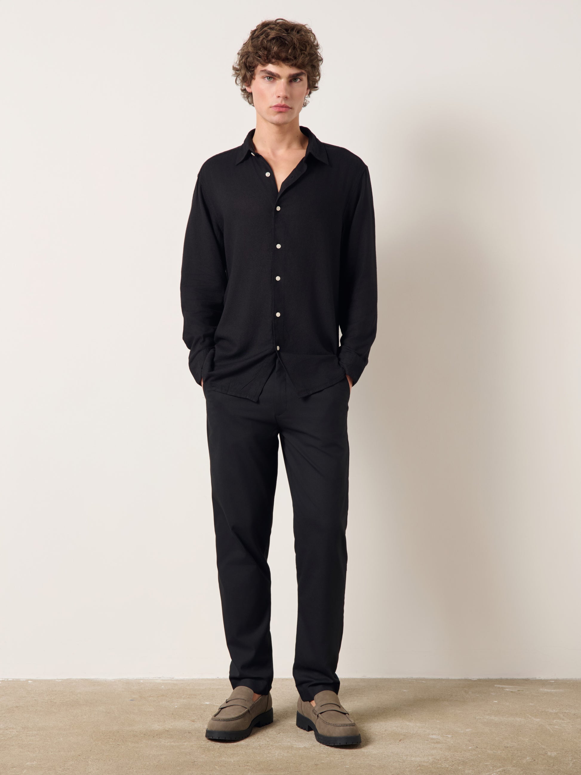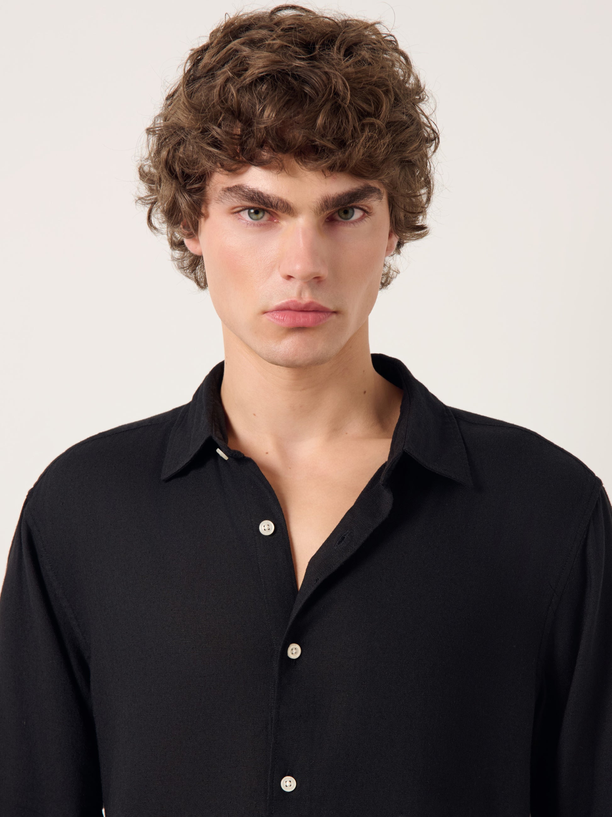 Relaxed fit collared shirt made of YUR Cotton viscose fabric for a distinct flowy look. Button-up front and a curved hem