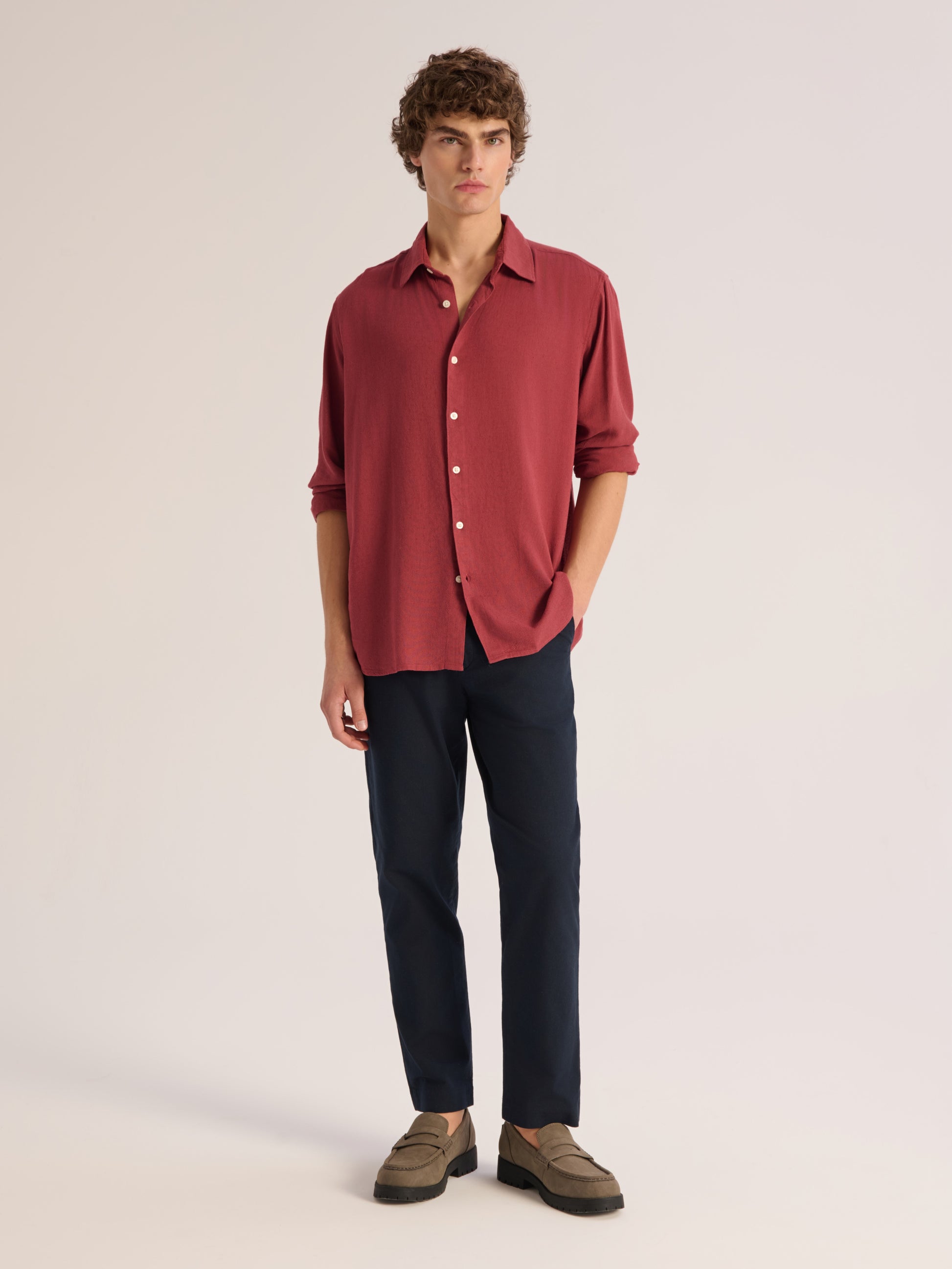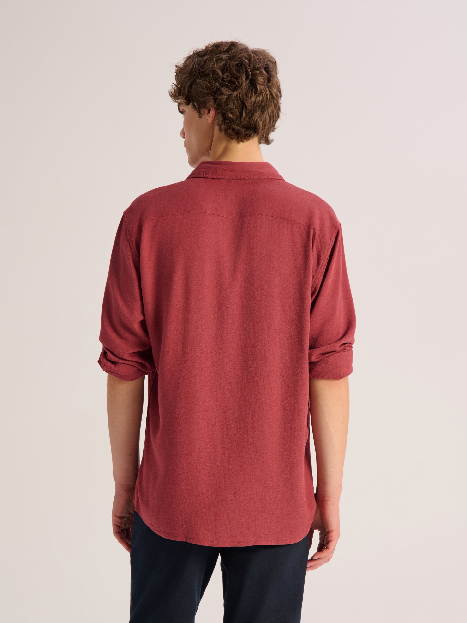 Relaxed fit collared shirt made of YUR Cotton viscose fabric for a distinct flowy look. Button-up front and a curved hem.