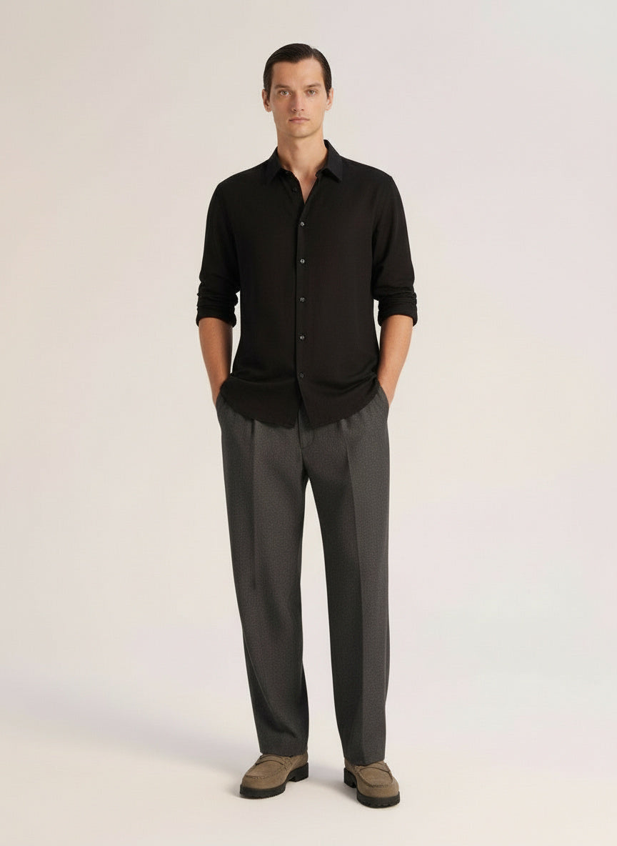 A sophisticated casual trousers offering a relaxed yet modern style with a sense of ease and comfortable living.