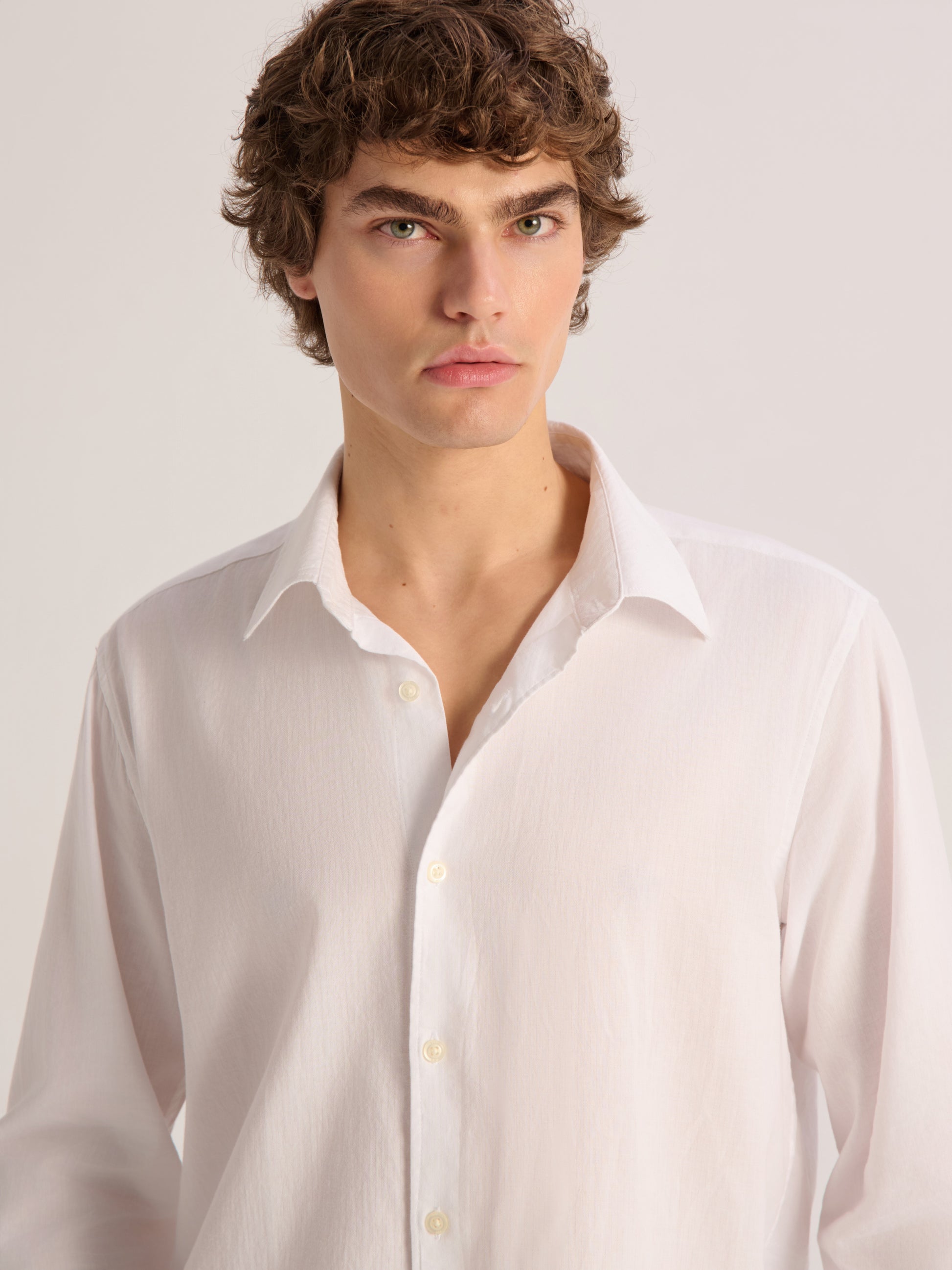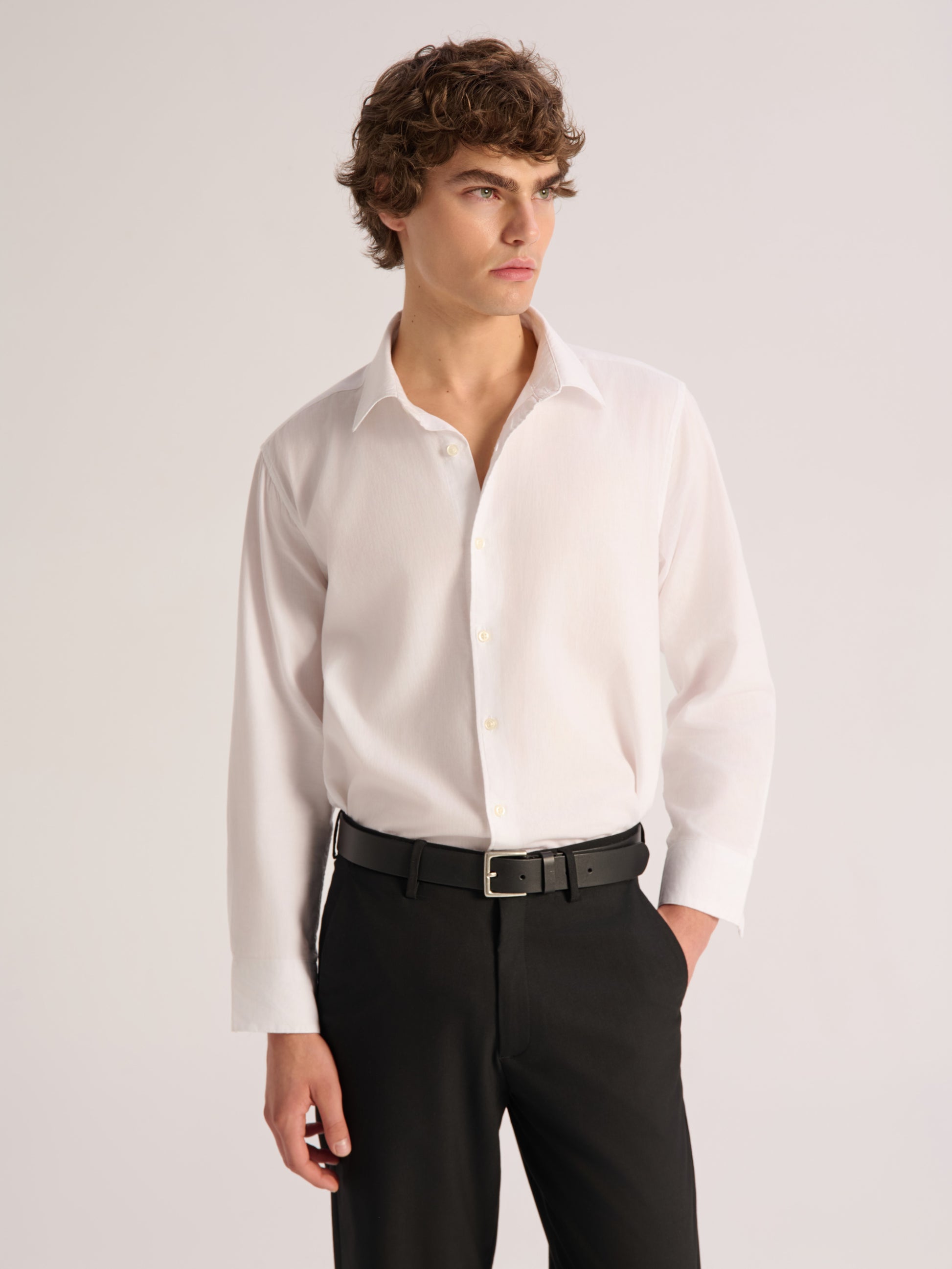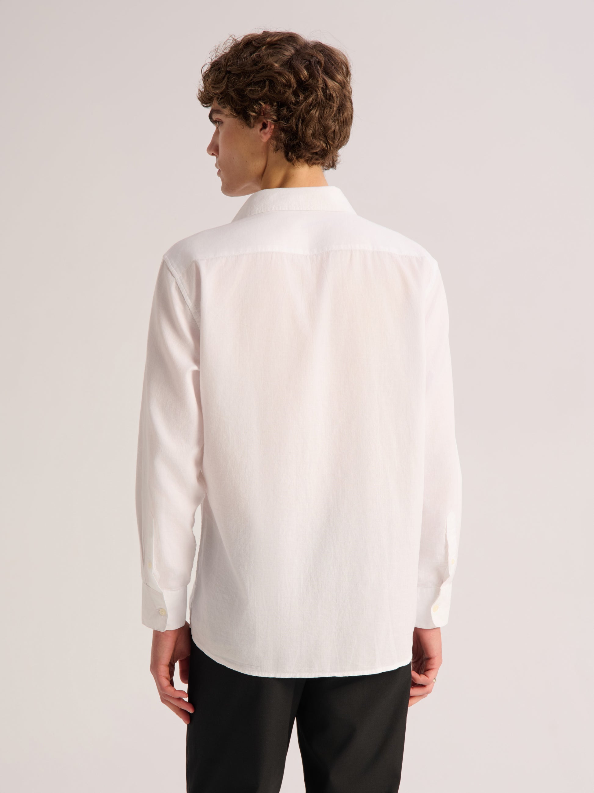 Relaxed fit: This fit is characterized by having a wider and looser silhouette in the torso, shoulders and arms that’s comfortable. Made of 100% cotton.