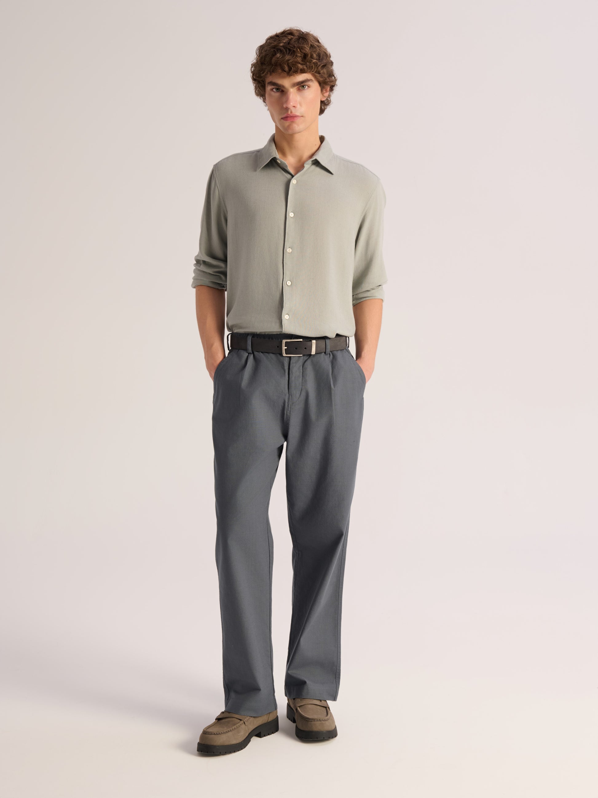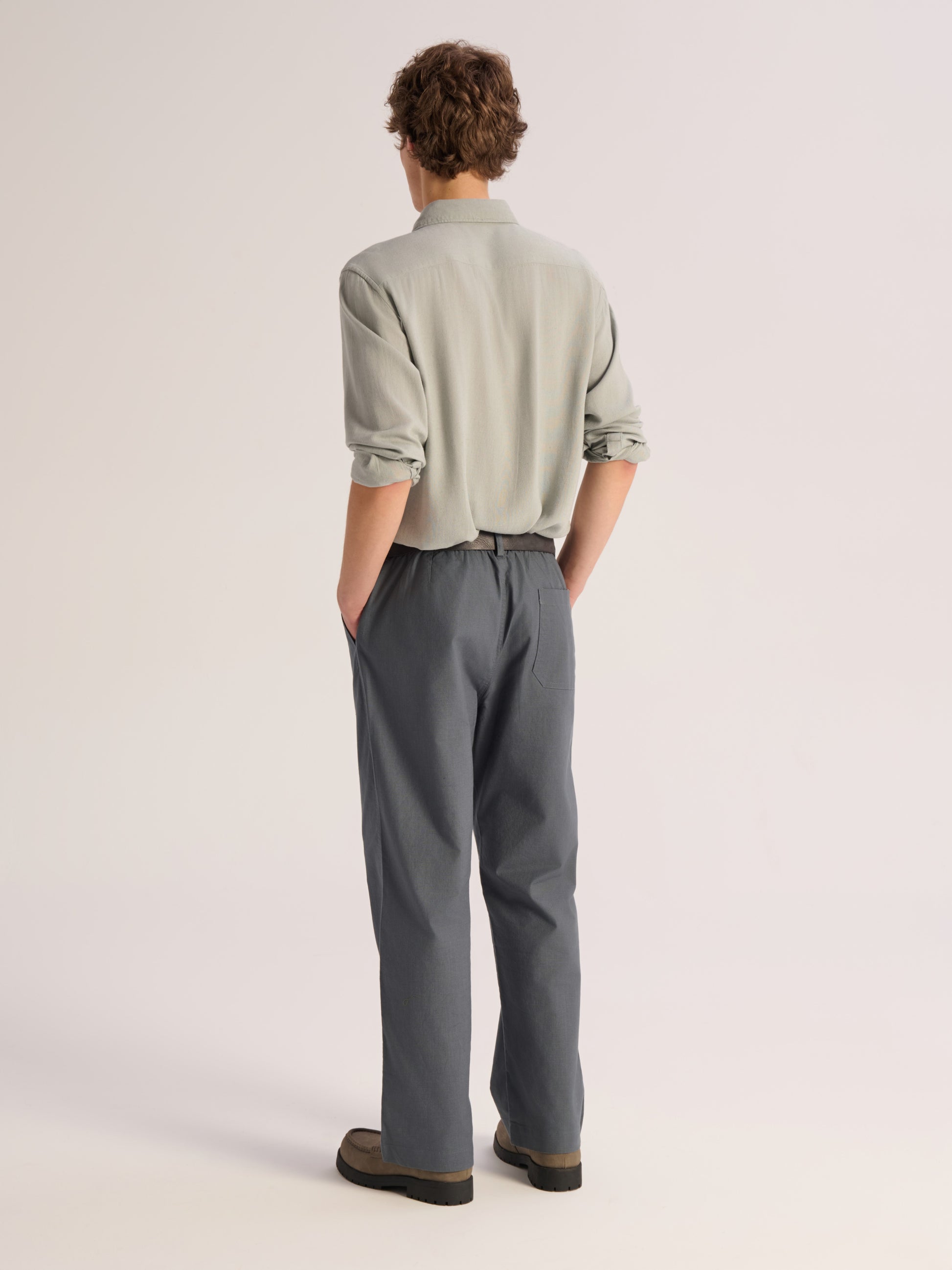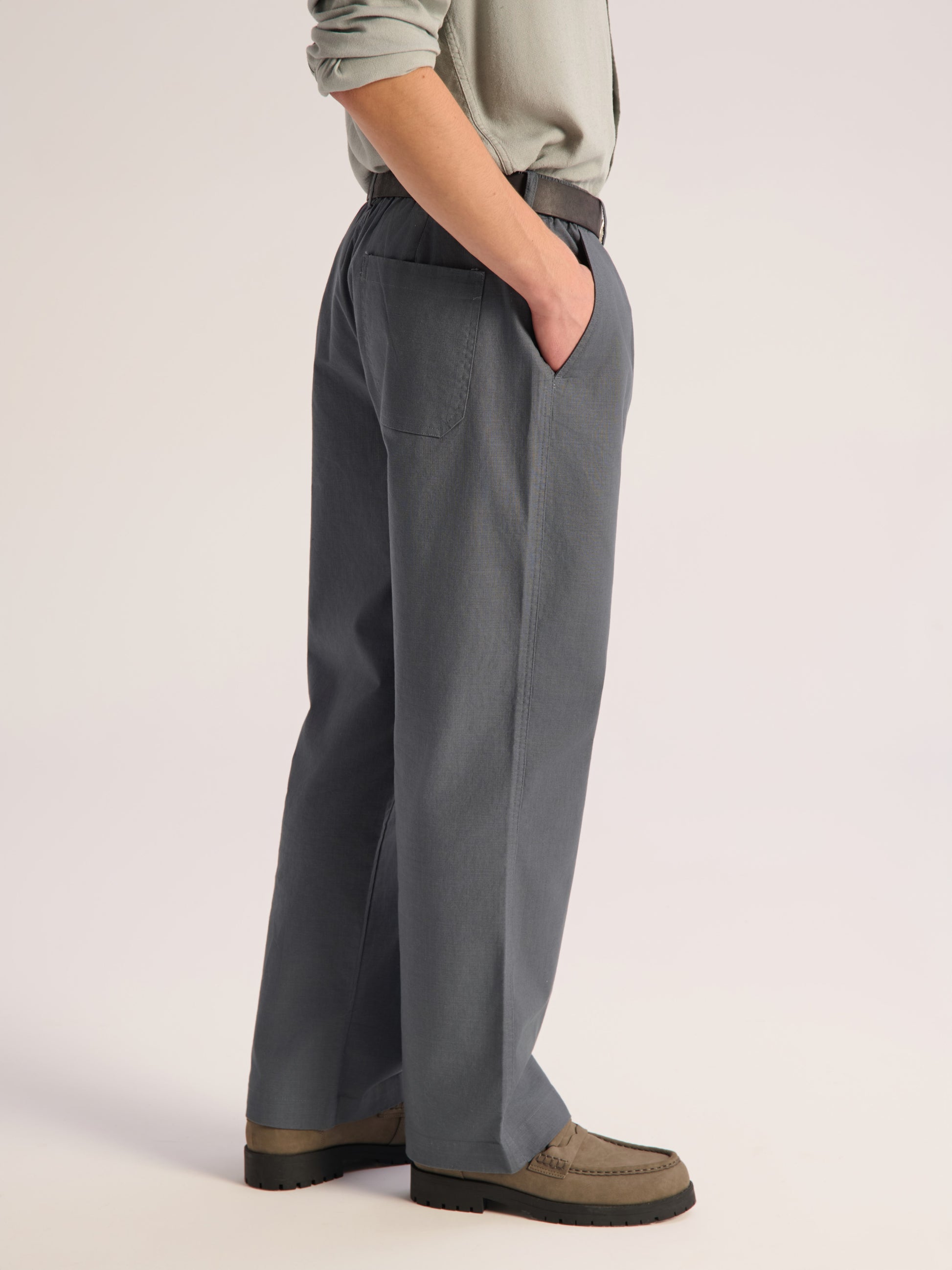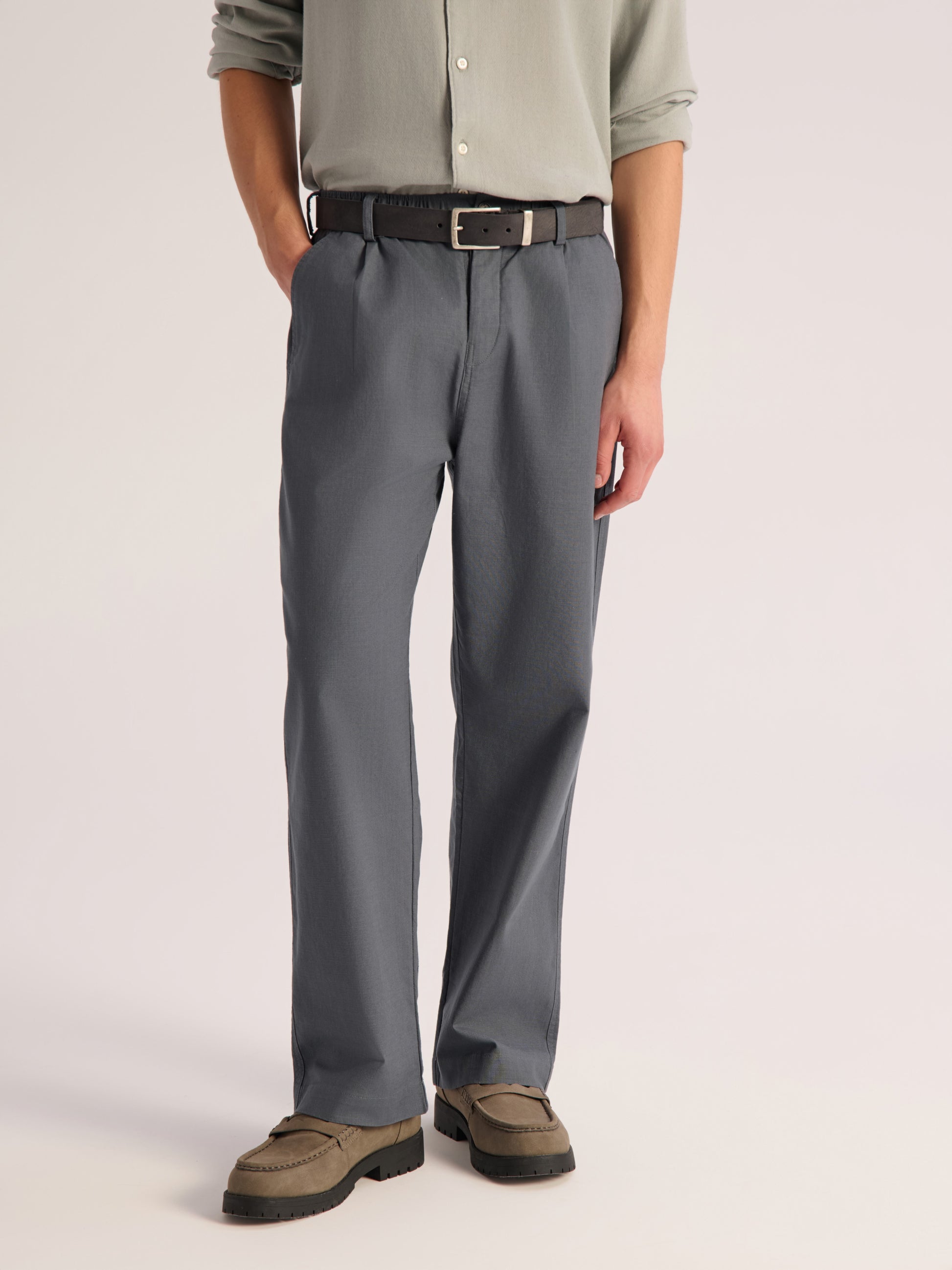YUR trousers defined with a mid waist and wide legs. They are made from light organic-cotton and specially washed for a soft surface with single pleats, side slip pockets. Tuck in a knitted top for a casual day.